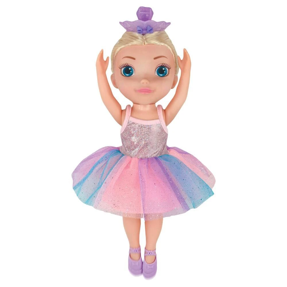 C’est magique, quand on appuie sur la tiare de la poupée, la ballerine se met à danser ! Très gracieuse, elle tourne sur elle-même comme une vraie danseuse étoile ! Elle peut lever sa jambe pour faire des jetés avants ou arrières toujours sur la pointe des pieds. Elle fait le grand écart, des pointes et de nombreuses figures en musique. Quand elle danse, son tutu s’illumine et elle fredonne une douce mélodie.