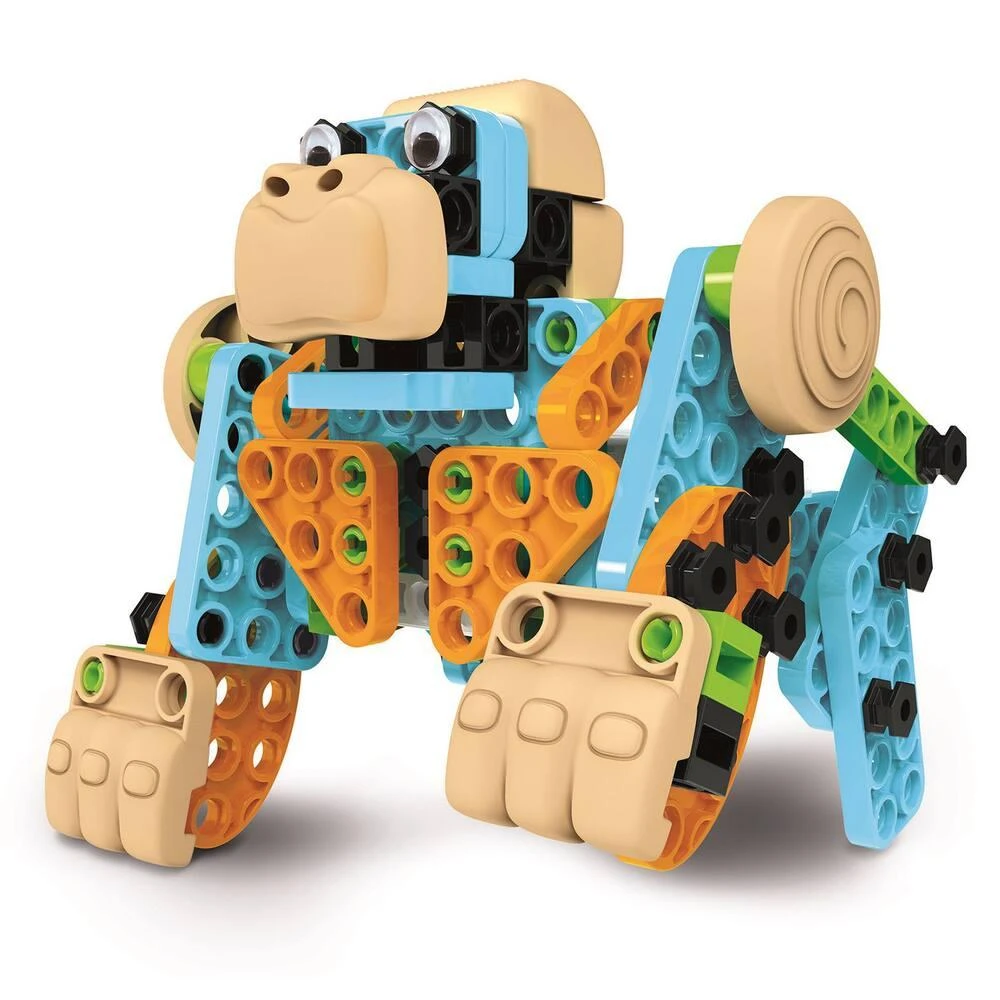 Invente, assemble et joue ! Voici Maker Lab, un laboratoire de mécanique pour les jeunes enfants avec de très nombreux composants à assembler facilement pour créer des animaux incroyables qui bougent et se déplacent ! Le jouet contient 120 éléments: traverses, plaques, clous, cubes, poulies et pièces spéciales (ellipses, arcs et triangles). Le module motorisé vous permettra d’animer chaque modèle assemblé. Les instructions te permettront d’assembler 5 modèles amusants d’animaux : un gorille, un lion, un phoque, un requin et un insecte. Ensuite, libre court à l’imagination pour inventer d’autres créatures. Pour animer tes créations, il suffit d’allumer le moteur. Le gorille avance sur ses poings, l’insecte bat des ailes, le requin se lance à l’attaque, le phoque se dandine vers l’avant et le lion charge ! Des heures de jeu en perspective avec Maker Lab : assemble, joue, défais et reconstruis les animaux de ce laboratoire de mécanique parfait pour les plus jeunes.