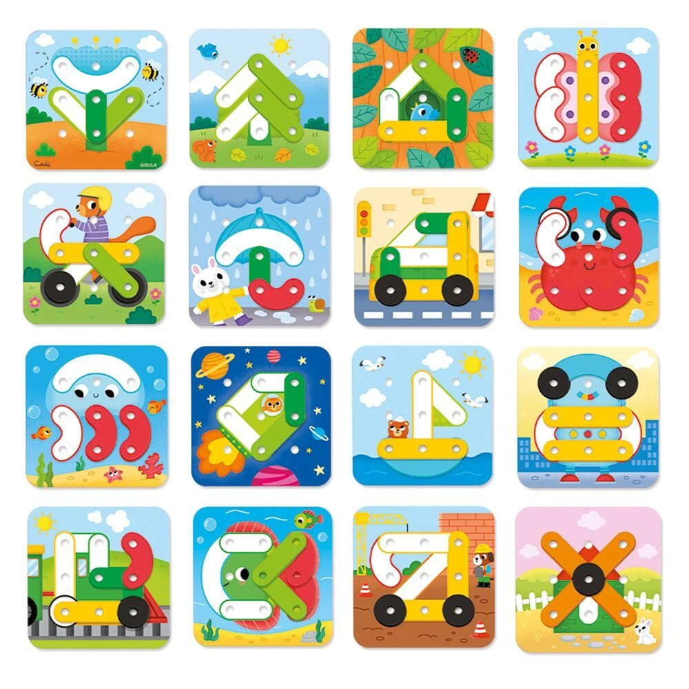 Complétez les feuilles en plaçant les pièces colorées ou en créant vos propre figures, comme les lettres, les nombres ou d’autres designs. Jeu éducatif et créatif.