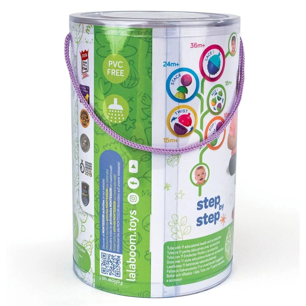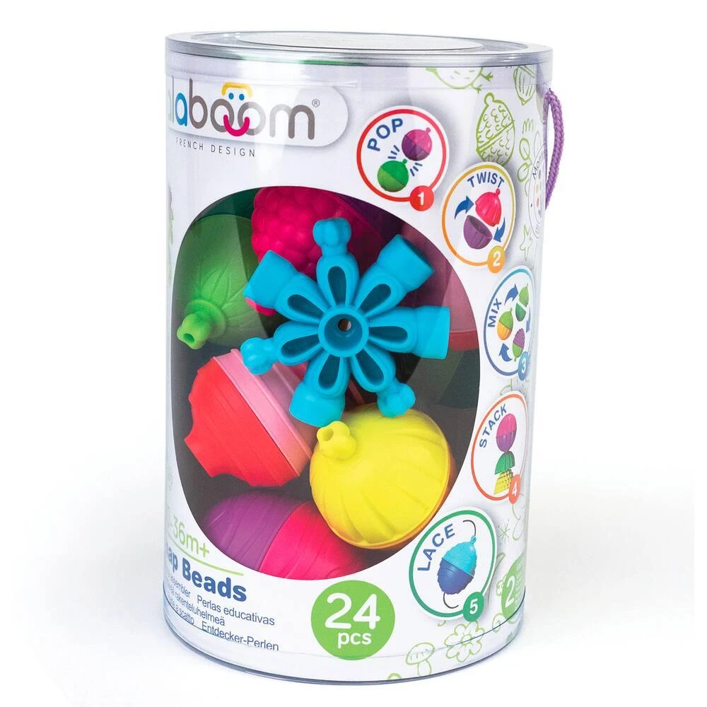 LalaBoom, des perles à clipser dédiées aux préscolaires selon les principes de la méthode Montessori. Le matériel sensoriel est donné à l’enfant comme une aide au développement de l’intelligence et de la main. Déjà dans l’utérus, le bébé apprend l’environnement par les données transmises par les organes des sens. L’enfant use librement de cubes, de cylindres de diamètres variés, d’objets emboîtables, de lettres découpées dans divers matériaux… Le matériel sensoriel mis au point par Maria Montessori permet à l’enfant de distinguer, de préciser, de généraliser, du concret vers le concept et du concept vers l’abstrait. C’est un matériel scientifique qui répond au besoin de développement naturel de l’enfant en respectant ses périodes sensibles. Pour 1- l’ordre : l’enfant classifie, ordonne, trie, élabore un raisonnement. 2- Le langage : l’enfant nomme les concepts. 3- Le mouvement : l’enfant affine l’usage de ses mains. 4- Le raffinement sensoriel : l’enfant atteint un grand raffinement avec certains matériels. 5- Le développement social : l’enfant se construit une identité et cherche à s’adapter aux autres pour s’intégrer dans un groupe.