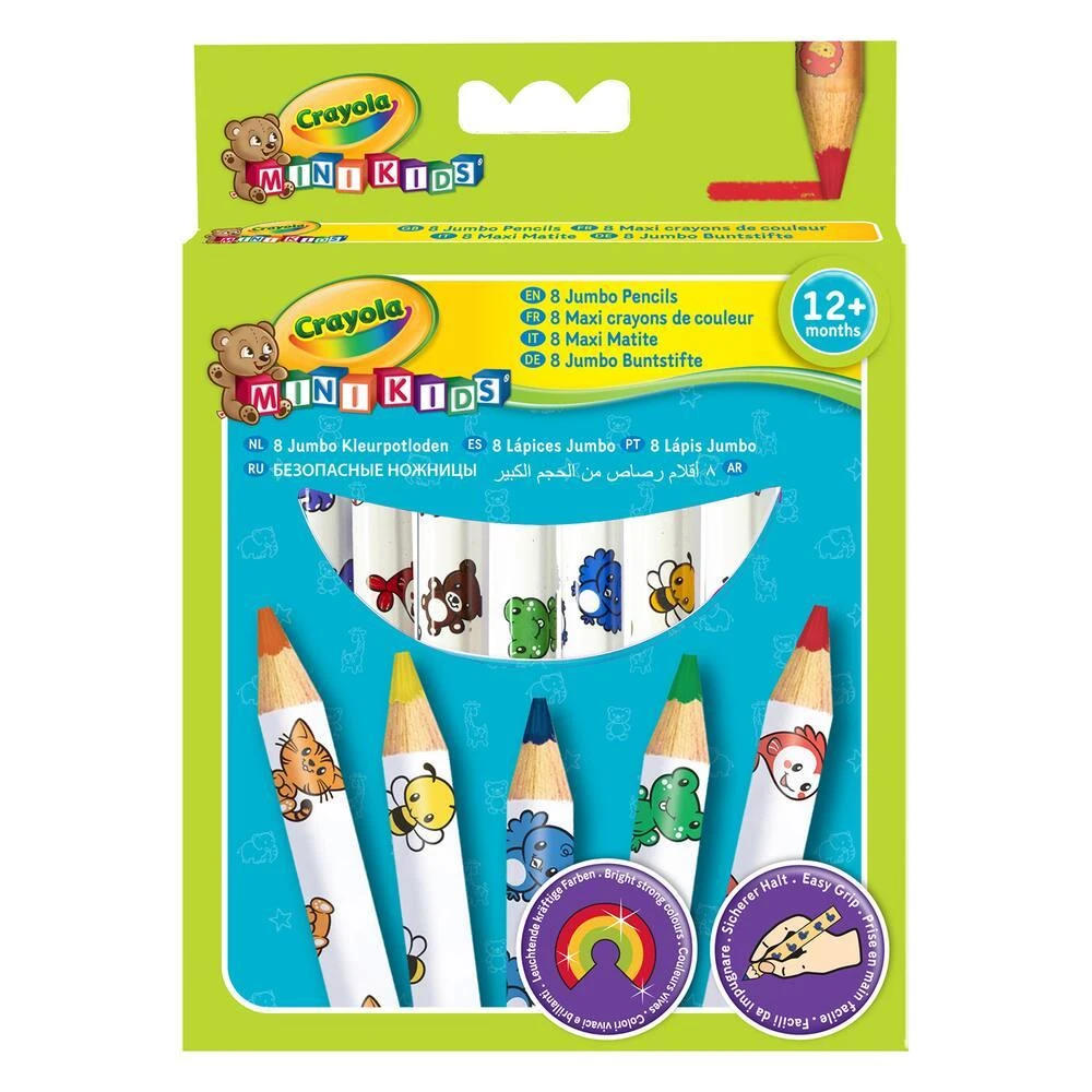De gros diamètre, ces crayons de couleurs Mini Kids décorés sont faciles à attraper par les petites mains. Les pigments de couleurs sont riches pour des tracés de couleurs vives.