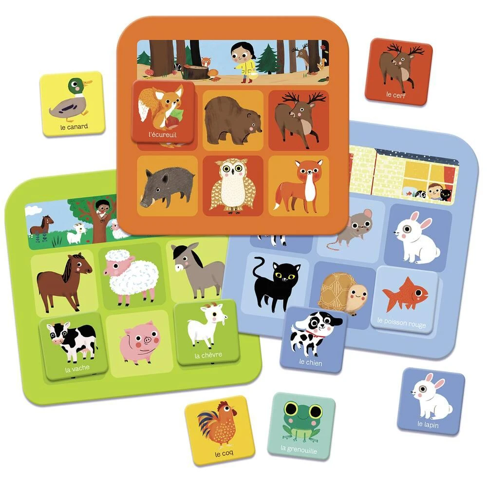 À la découverte des animaux familiers tout en s’amusant avec ce loto pour les plus petits et ses illustrations attendrissantes ! La boite contient 5 planches et 30 jetons.