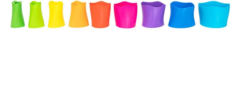 Mais ensuite, emboîtez-les ensemble, tirez sur le plus petit et admirez ! L’ensemble s’étire pour former une grande tour en spirale ! Ce design magnifiquement non intuitif va inspirer des heures de découverte tactile.