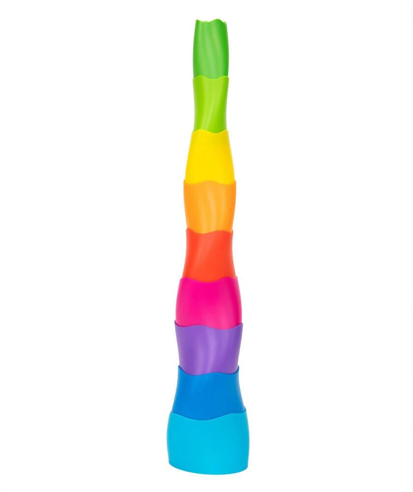 Ce jouet n’est pas une tour à empiler habituelle ! Ses pièces aux formes étranges peuvent être empilées et disposées comme bon vous semble ! Étire tes 9 formes d’empilage uniques pour former une tour colorée en spirale. Hauteur : 55 cm.
