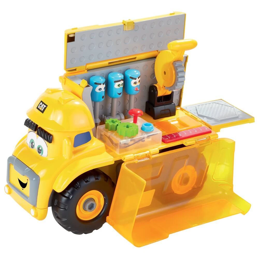 A roues libres. Appuie sur le casque pour ouvrir l’atelier. Avec 8 sons, 3 outils aimantés et 1 scie à effets sonores.